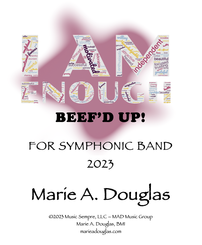 I am Enough-Beef’d Up! is unlimitedly what I would call the remix of I am Enough and Big Mad. While composing I am Enough and Big Mad, two commissions geared towards two young bands, I was met with many challenges and found myself making a lot of edits to fit those groups. I was in a constant struggle with still wanting my music to be worth playing and worth listening to by all parties. However, with my fixation with music production, I knew right away that I couldn’t let this cool content go to waste. So therefore, I was going to remix the two works and build a suite that will aim more at advanced players.